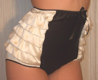 You know I can't leave well enough alone, so, after finding Crikey Aphrodite's etsy store, I had to see who else was selling suspender belts. I really like this garter set by seller Hopeless. It feels very luxe and retro, and, with the right accessorise, could even work as supersexy maid costume for Halloween. She even has a pair of delectable, rufled undies, and I know how some you like your frilly underthings!