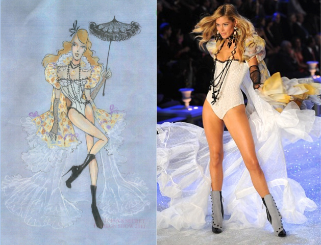 The 2011 Victoria’s Secret Fashion Show has been by far the most thrilling and challenging for us. We made 10 corsets for several of the themes: Ballet, Angels Aquatic, and I Put a Spell on You. The designs are closely guarded secrets that are only unveiled on the runway. Once we send our corsets off to the show, there is excitement down to the last minute as we wait to see how things will turn out.