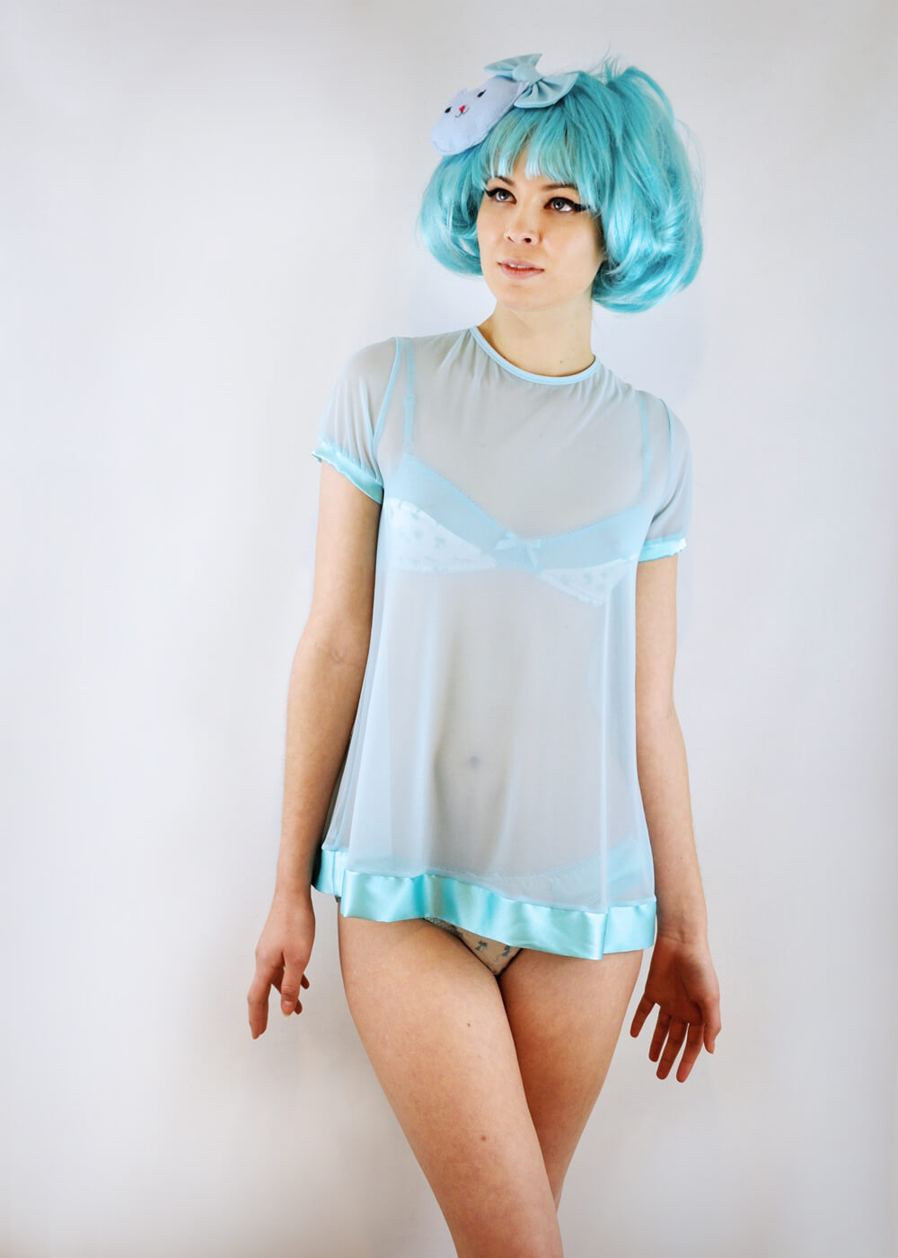 Nic originally had the idea of a line that would mimic the fun of childhood animal panties but with some grownup sass and attitude. She also wanted the line to be full of soft and luxurious materials, so the pieces are constructed from original print on a silk/cotton blend and lots of soft mesh. The new line features a longline bra, a soft cup bra, a high waist panty, a low rise panty, a matching babydoll, and a bodysuit for each set of animals.