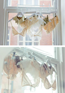 Currently, you can purchase Flimsymoon directly from Freyia. She is in the process of trying to get funding to put her lingerie into production on a small batch scale, and she'll hopefully be launching a crowd-funding campaign at the end of 2013/beginning of 2014 on Kickstarter. She adds, "In the meantime if you contact me directly, I'd be happy to make one off pieces!" Porteous is currently in the process of working out how her pieces would be priced commercially. As for one-offs, prices are negotiable.