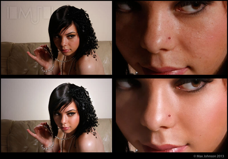 Retouching example by Max Johnson. Which version of the image do you think is a better reflection of how you would observe this model's skin in life?