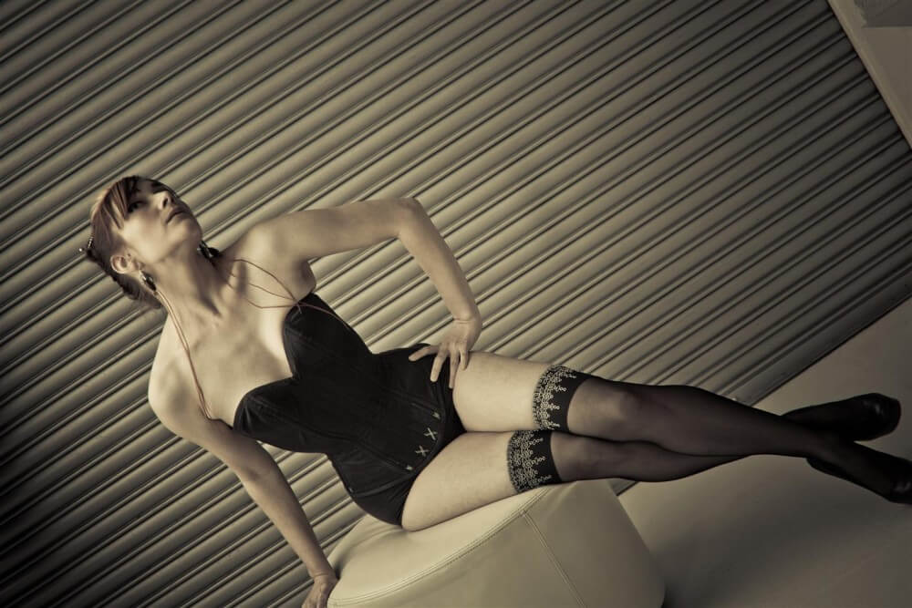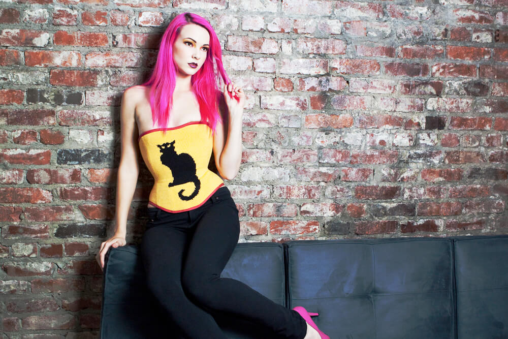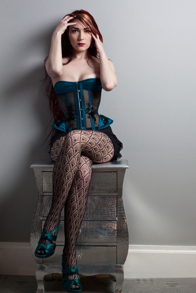 Victoria Dagger in a Pop Antique "Flirt" RTW corset, which has a fit comparable to the Valentine shown below. Victoria is 5'3". Photo by Andres Razo.