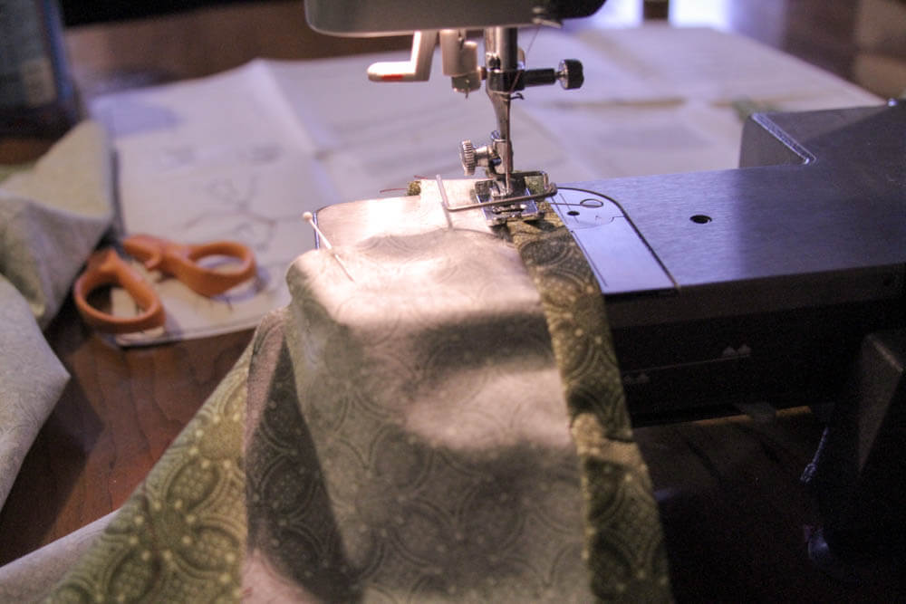 6) Stitch around curved line. While you are stitching around the curved line, you may have to lift the presser foot on your sewing machine to turn the fabric. Take this part slowly if you need to.